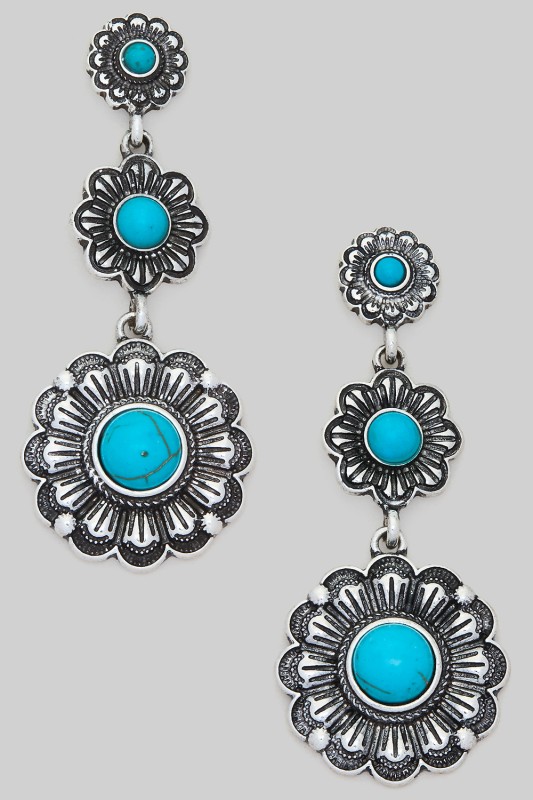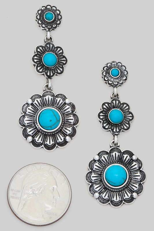 Hypoallergenic Turquoise Triple Flower Drop Earrin