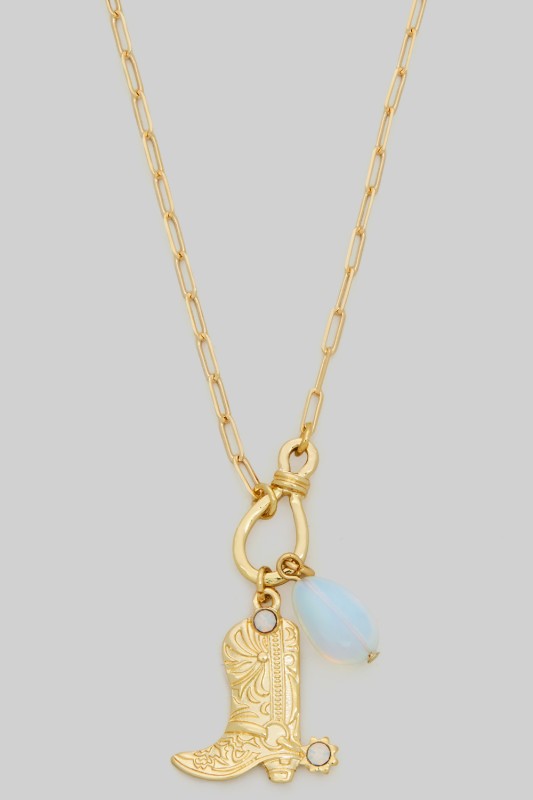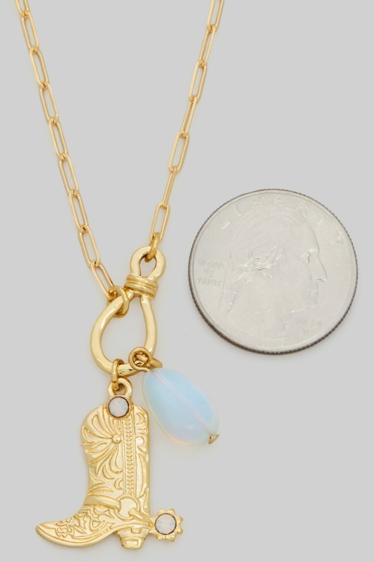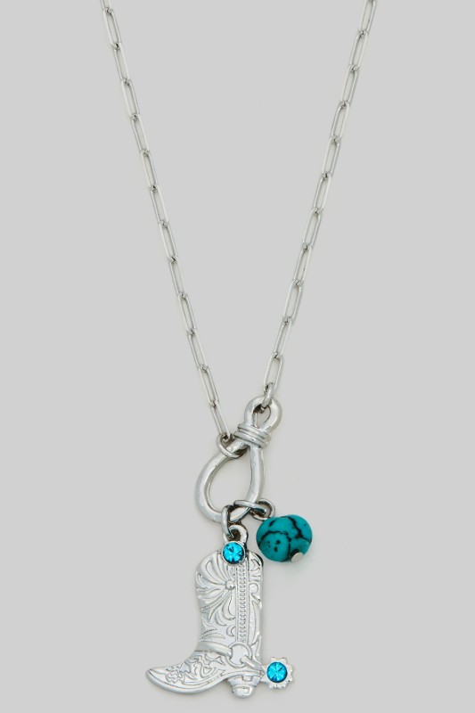 Western Stone Boot Necklace Earring Set Please register or log in to view prices. Turquoise stone Western boot pendant chain necklace. Includes matching mini boot earrings. Approx. l…