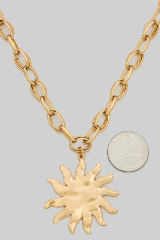 Dainty Sunburst Pendant Necklace Please register or log in to view prices. DAINTY SUNBURST PENDANT NECKLACE. LENGTH 15+2".Units in Prepack: 2Price per unit: $4.00