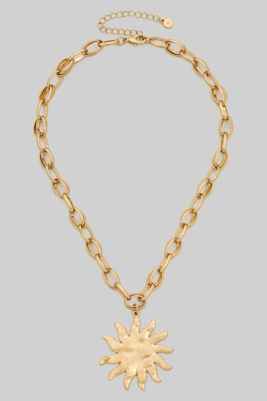 Dainty Sunburst Pendant Necklace Please register or log in to view prices. DAINTY SUNBURST PENDANT NECKLACE. LENGTH 15+2".Units in Prepack: 2Price per unit: $4.00