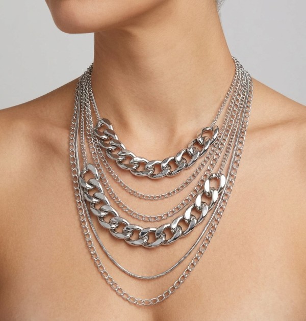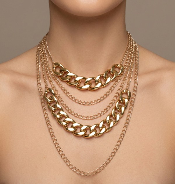 Layered Chain Necklace With Puff Hearts Please register or log in to view prices. Shine with this chic layered chain necklace featuring puffed heart charms that add a touch of playfu…