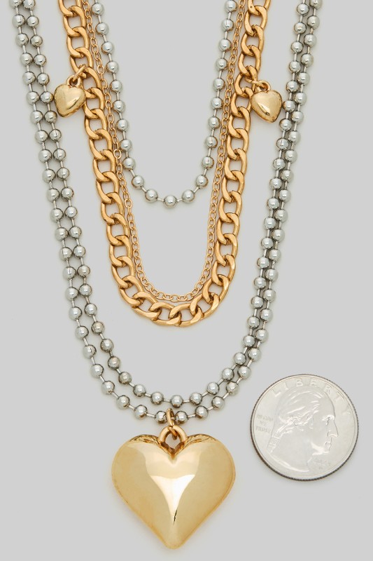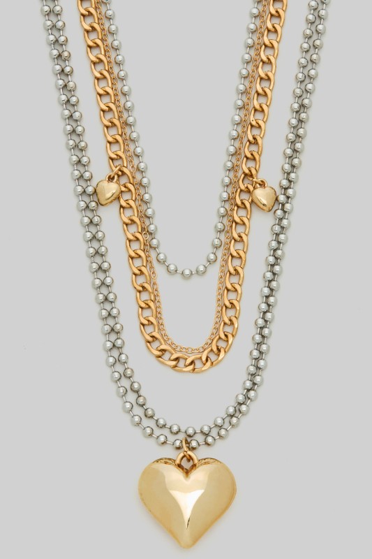 Layered Heart Pendant Chain Necklace Please register or log in to view prices. Cube bead and wide chain layered necklace featuring heart pendant. Approx. length "16.50+2.75".Units…