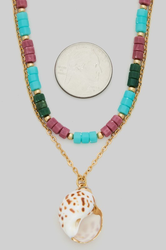 Layered Shell Necklace With Shell Pendant Please register or log in to view prices. Add a touch of beachy charm to your style with this layered shell necklace featuring a delicate shel…