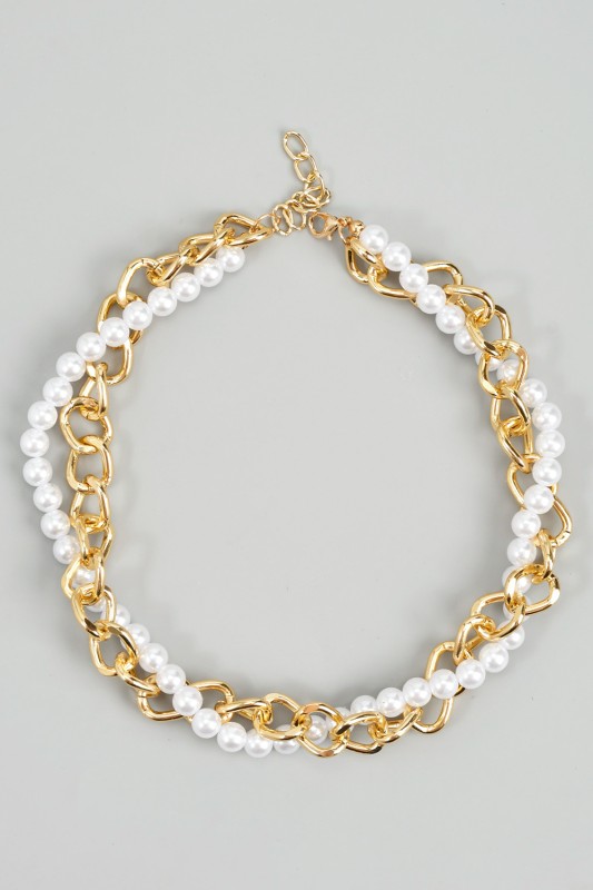Pearl And Clip Chain Layered Necklace. Please register or log in to view prices. Pearl and clip chain layered necklace. Approx. Length 16+3".Units in Prepack: 2Price per unit: $4.00