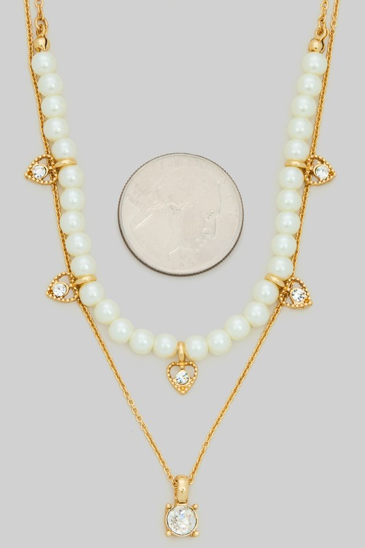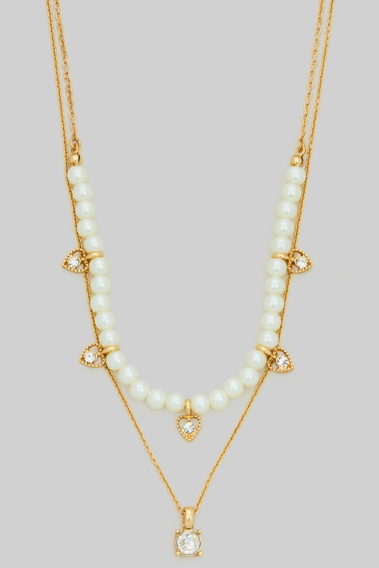 Layered Chain Necklace With Charms And Pearls Please register or log in to view prices. Add a touch of elegance and fun to your style with this layered chain necklace featuring sparkling c…