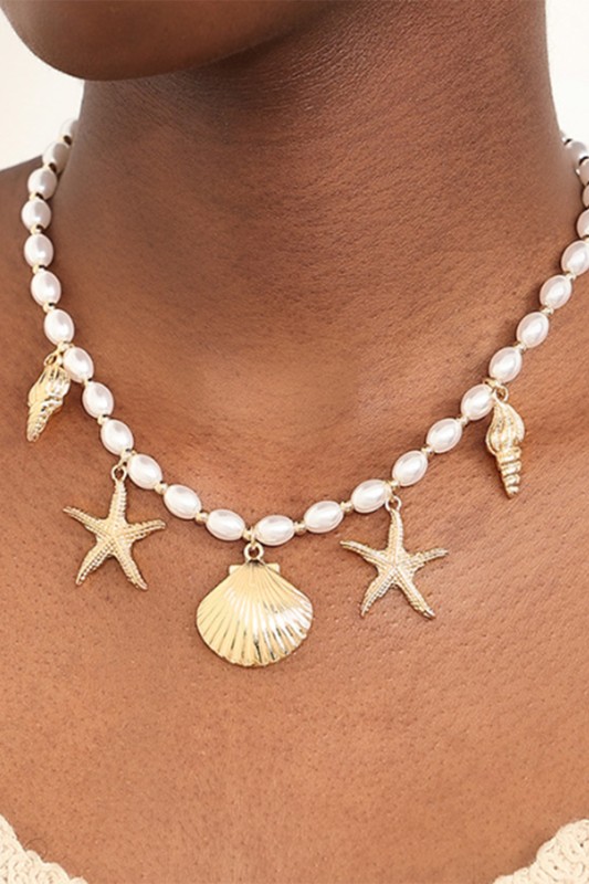 Shell Pearl And Starfish Charm Necklace Please register or log in to view prices. Bring the beach wherever you go with this shell pearl and starfish charm necklace. At 16 inches plus…