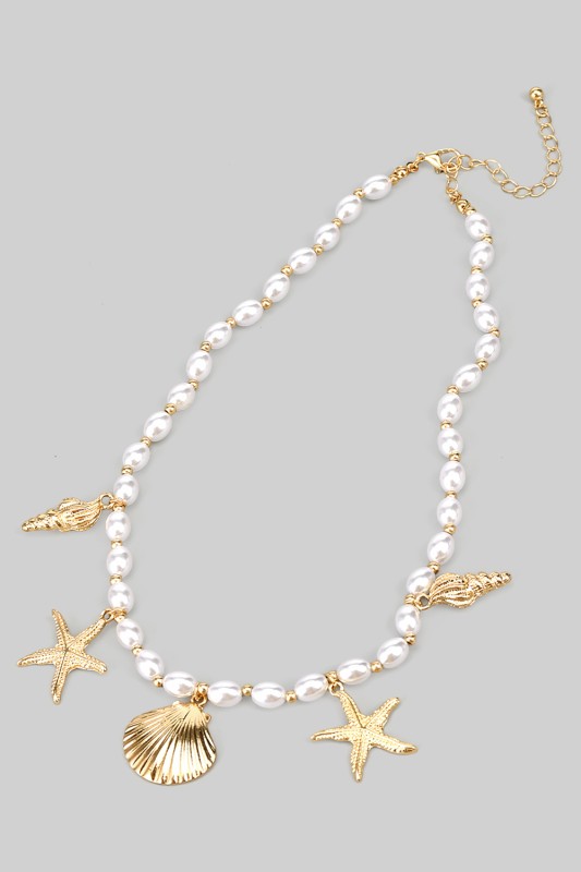 Shell Pearl And Starfish Charm Necklace Please register or log in to view prices. Bring the beach wherever you go with this shell pearl and starfish charm necklace. At 16 inches plus…