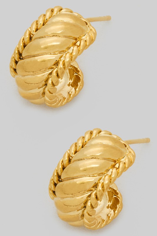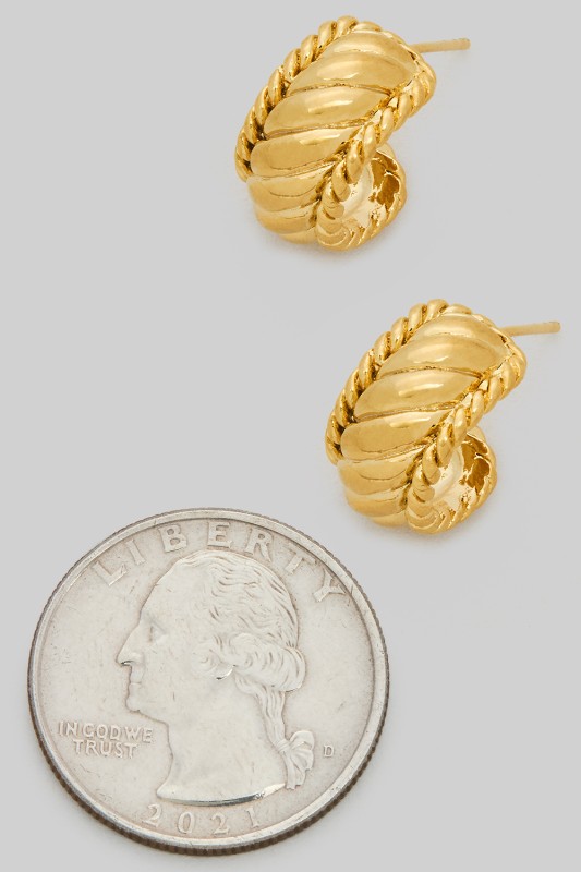 Twist C Hoop Earrings Please register or log in to view prices. Textured twist C hoop earrings. Approx. Length 1". Units in Prepack: 2Price per unit: $4.50