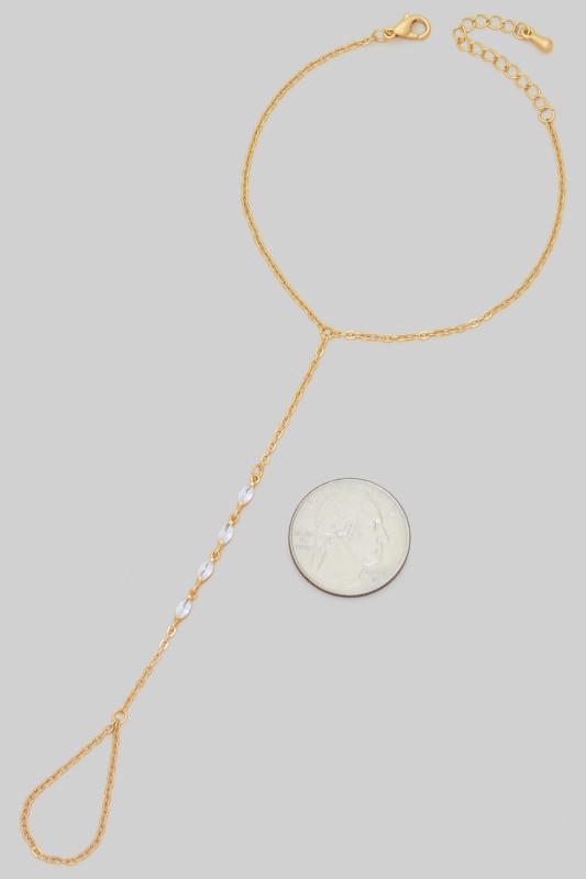 Mq Shaped Prong Setting Brass Hand Chain Bracelet