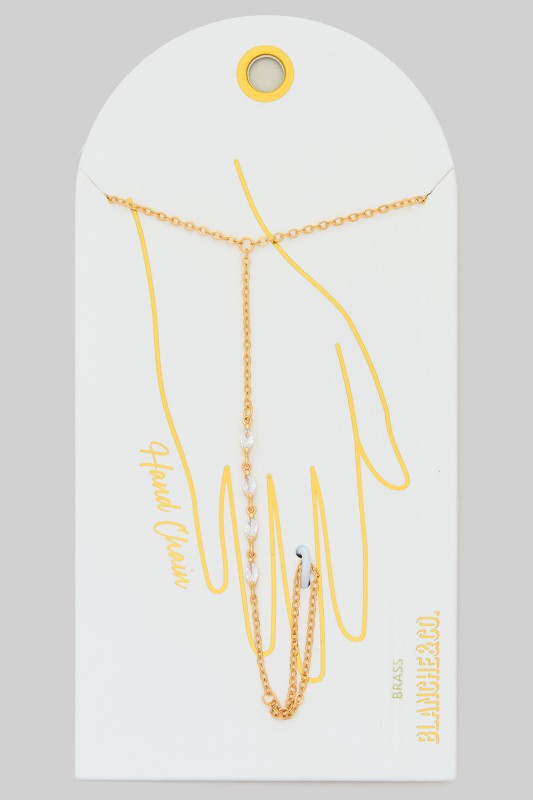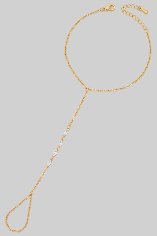 Mq Shaped Prong Setting Brass Hand Chain Bracelet