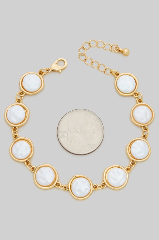 Pearl Clover Stretch Bracelet Please register or log in to view prices. Faux pearl, MOP clover accent stretch bracelet. Units in Prepack: 2Price per unit: $5.00