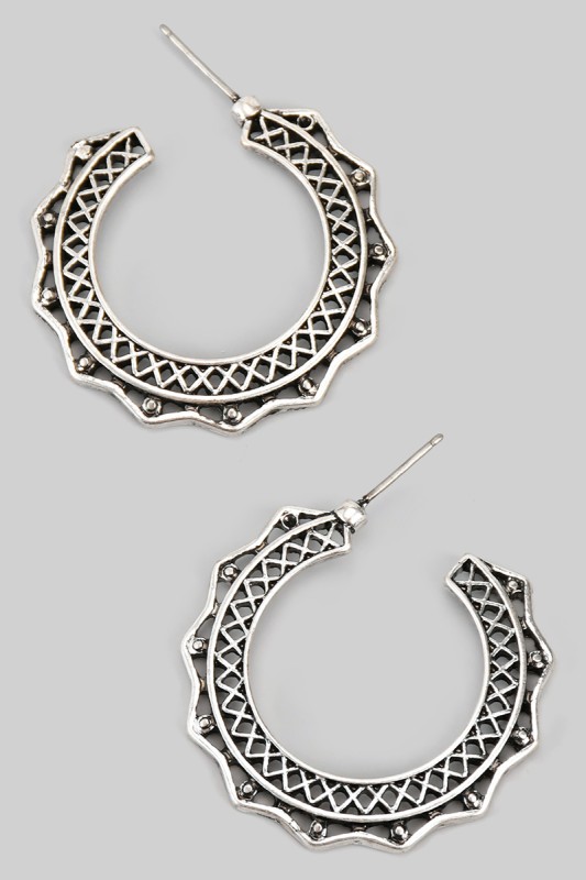18K Gold Dipped Ornate Pressed Hoops Please register or log in to view prices. Turn up the shine with these 18K gold dipped ornate pressed hoops. At 1.25 inches they bring just th…