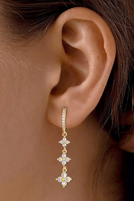 Brass Huggies With Pave Clovers Please register or log in to view prices. Add a pop of sparkle and charm with these brass huggies featuring tiny pave clovers. Just one inch l…