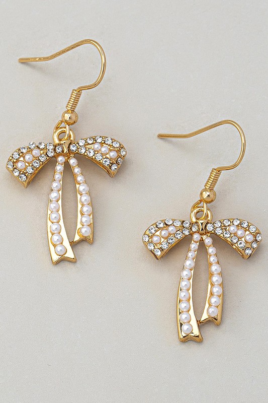 Brass Rhinestone Pave Bow Dangle Huggie Earrings Please register or log in to view prices. BRASS RHINESTONE PAVE BOW DANGLE HUGGIE EARRINGS. LENGTH 1".Units in Prepack: 2Price per unit: $5.00
