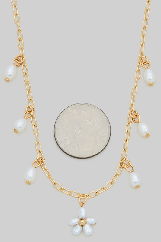 Flower Faux Pearl Necklace Please register or log in to view prices. Flower faux pearl beaded necklace. Approx. length "17+3".Units in Prepack: 2Price per unit: $4.50