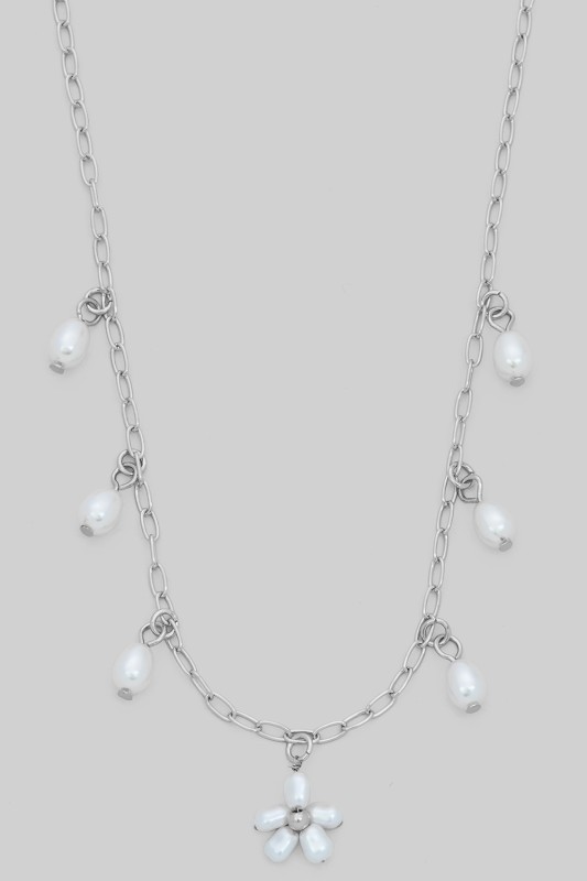 Flower Faux Pearl Necklace Please register or log in to view prices. Flower faux pearl beaded necklace. Approx. length "17+3".Units in Prepack: 2Price per unit: $4.50