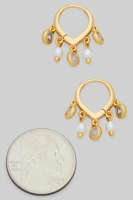 Mini Brass Hoops With Dangling Round Cz Charm Please register or log in to view prices. Elegant mini brass hoops feature a sparkling round CZ charm that sways gracefully with every move. M…