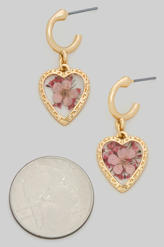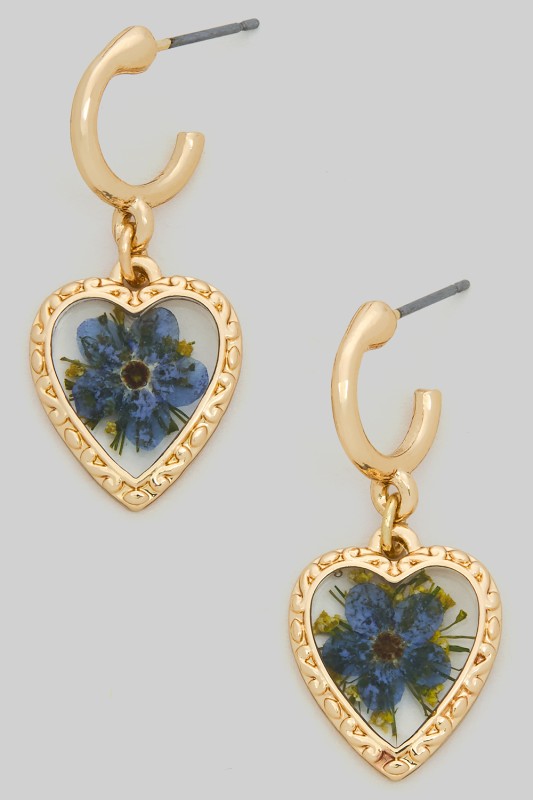 Pressed Flower Acrylic Heart Drop Earrings Please register or log in to view prices. Fall in love with these charming pressed flower acrylic heart drop earrings. Featuring delicate bloo…