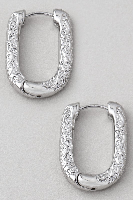 Pressed Print Oval Hoop Earrings