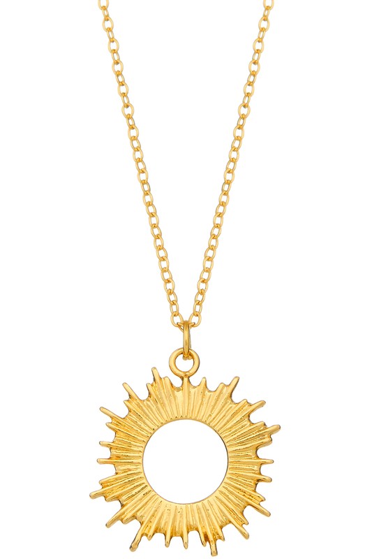 Radiant Sun Pendant Necklace - #1C0518 Please register or log in to view prices. Rhinestone bursting sun pendant, gold dipped dainty chain necklace. Approx. length "16.5+2".Units in…