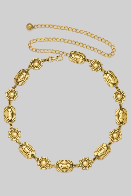 Textured Circle Chain Link Belt Please register or log in to view prices. TEXTURED CIRCLE CHAIN LINK BELT. LENGTH TO FIRST HOLE 25" - LAST HOLE 43".Units in Prepack: 2Price p…