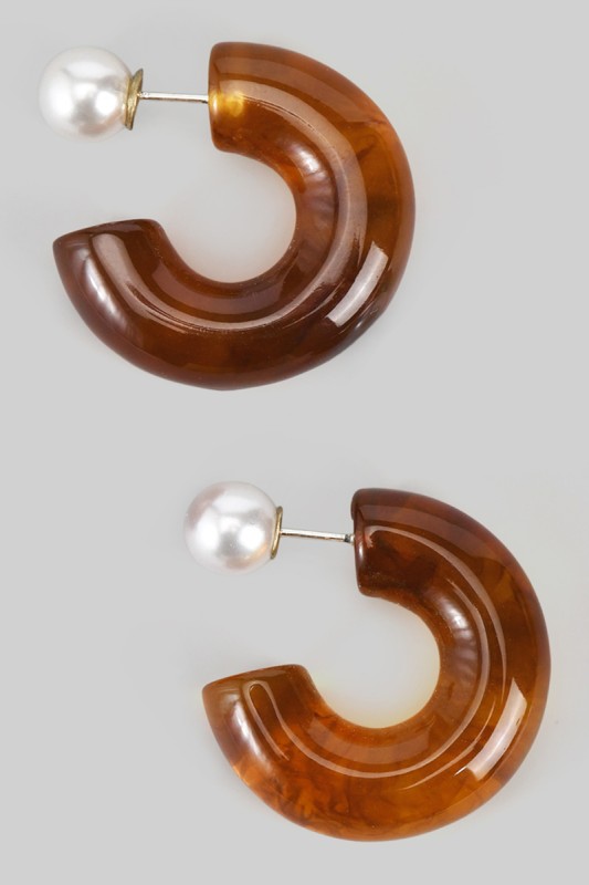 Acrylic Pearl Hoop Earrings Please register or log in to view prices. Geometric acrylic hoop earrings with inner pearl detail. Approx. length 1.5".Units in Prepack: 2Pric…