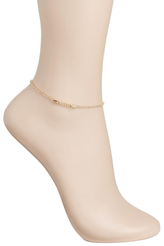 Rhinestone Pave Bar Charm Anklet