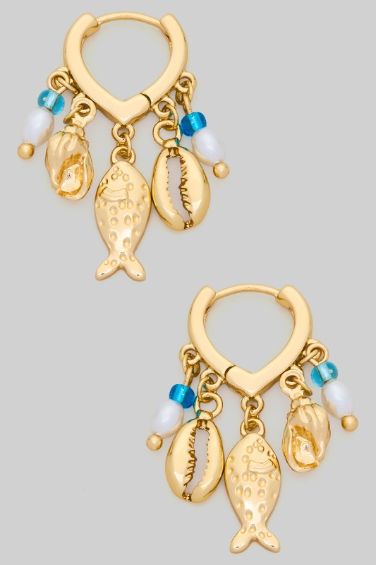 18K Gold Dipped Hoops With Dolphin Charm And Beads Please register or log in to view prices. Radiate ocean inspired charm with these 18K gold dipped hoop earrings featuring playful dolphin char…