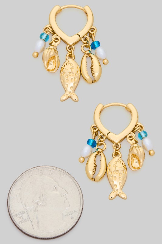 18K Gold Dipped Hoops With Dolphin Charm And Beads Please register or log in to view prices. Radiate ocean inspired charm with these 18K gold dipped hoop earrings featuring playful dolphin char…