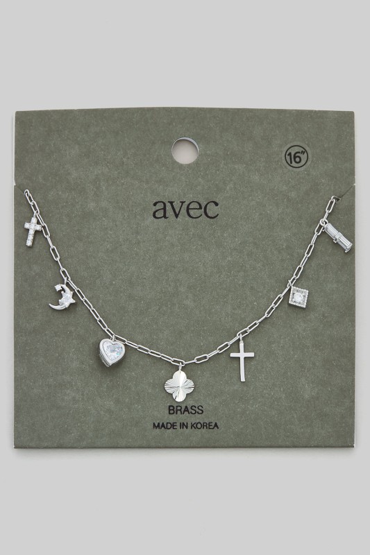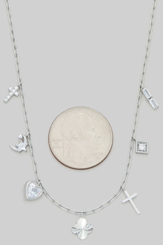 Color Heart Mop Cross Seven Charm Necklace Please register or log in to view prices. Radiate charm with this colorful heart and mother of pearl cross seven charm necklace. Each charm ad…