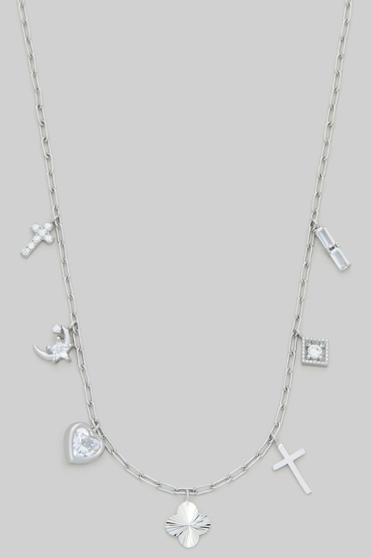 Color Heart Mop Cross Seven Charm Necklace Please register or log in to view prices. Radiate charm with this colorful heart and mother of pearl cross seven charm necklace. Each charm ad…