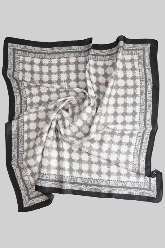 Silky Square Scarf With Chain And Geo Print