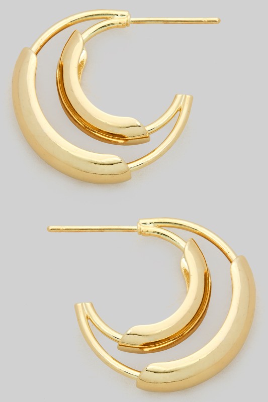Brass Stacked Hoop Earrings - #GE10701 Please register or log in to view prices. BRASS STACKED HOOP EARRINGS. WIDTH 0.75".Units in Prepack: 2Price per unit: $5.00