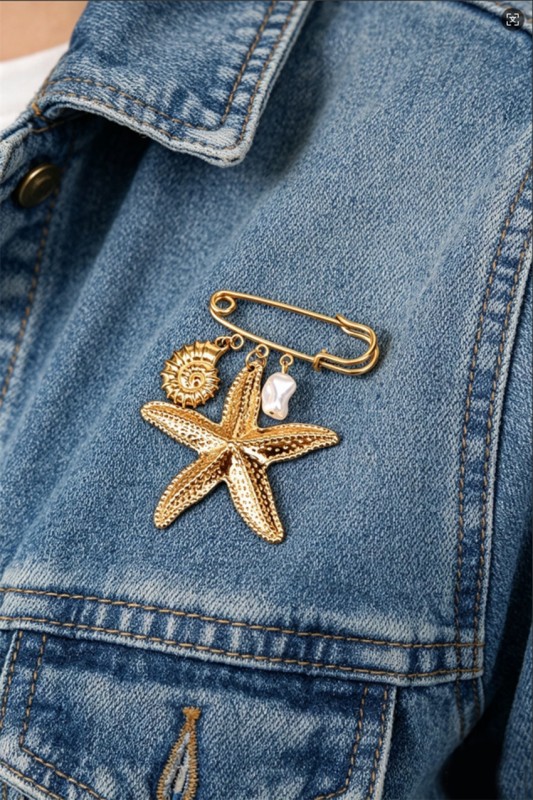 Stainless Steel Starfish Brooch Pin Please register or log in to view prices. This elegant stainless steel starfish brooch pin adds a touch of coastal charm to any look. Measurin…