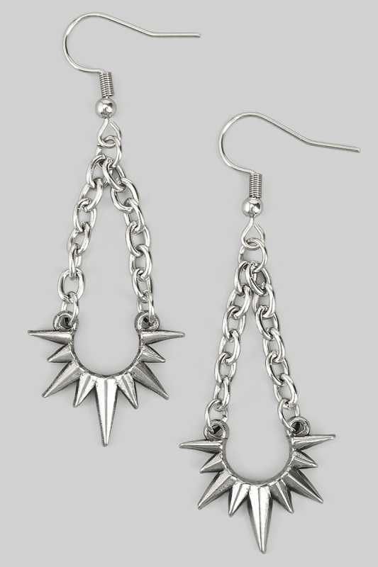 Stainless Steel Spiked Dangling Spike Huggies Please register or log in to view prices. Stainless Steel Spiked Dangling Spike Huggies measure 1.25 inches in length. These edgy earrings fea…