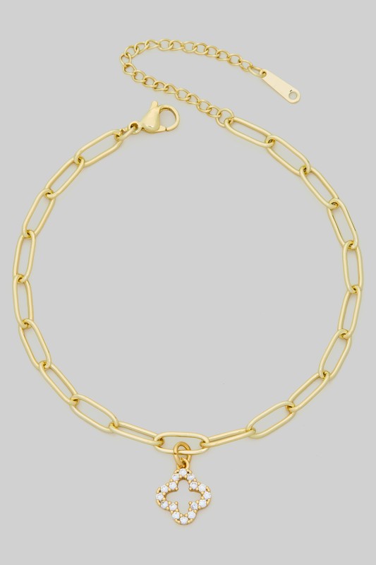 Mop Cz Clover Charm Stainless Steel Clip Chain Ank Please register or log in to view prices. Add a touch of elegance with this mother of pearl CZ clover charm anklet crafted in durable stainles…