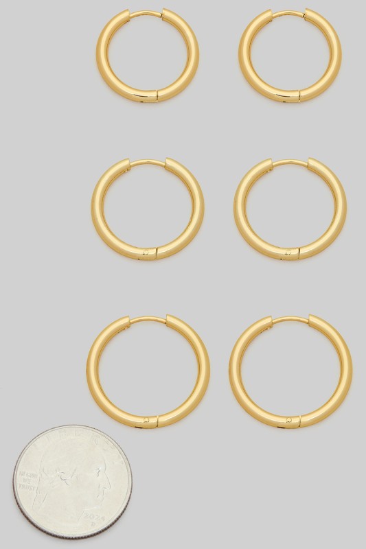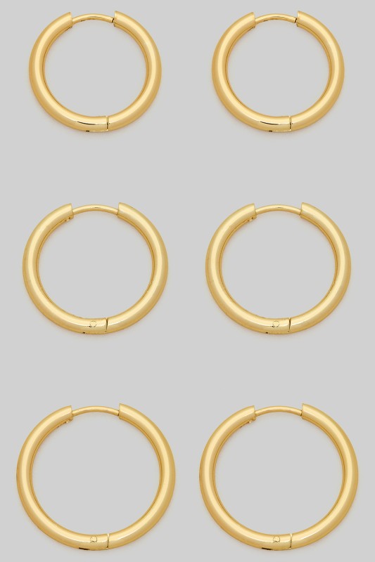 Three Pair Chunky Hoop Set Please register or log in to view prices. Elevate your style with our Three Pair Chunky Hoop Set. This versatile collection features three stu…
