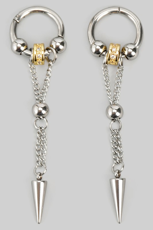 Stainless Steel Spiked Hoop With Razor Please register or log in to view prices. Add a bold edge to your look with this stainless steel spiked hoop featuring a razor charm. Measurin…
