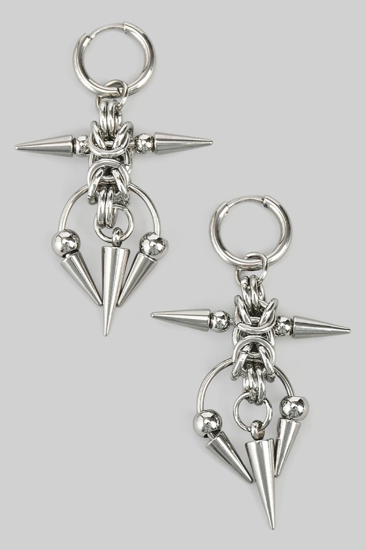 Stainless Steel Spiked Dangling Spike Huggies Please register or log in to view prices. Stainless Steel Spiked Dangling Spike Huggies measure 1.25 inches in length. These edgy earrings fea…