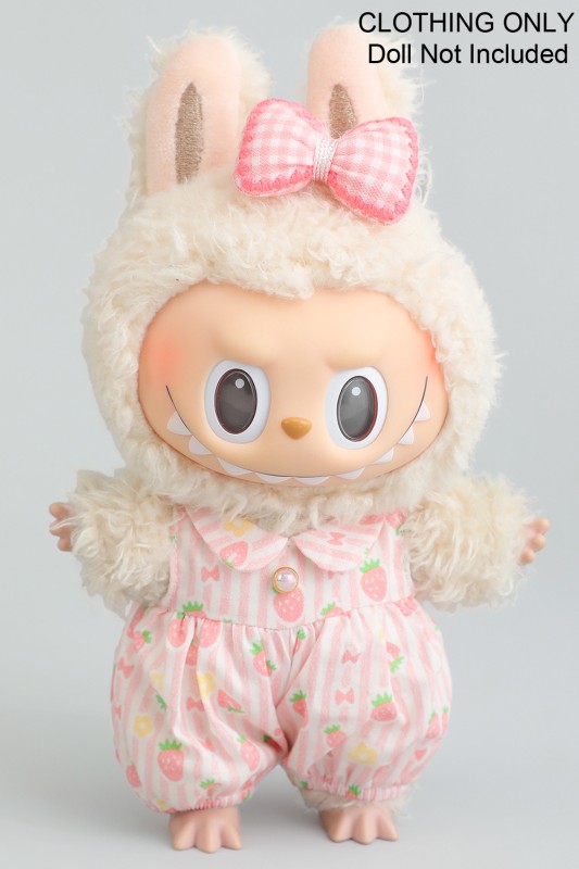 Strawberry Jumpsuit With Bow Pin Labubu Outfit