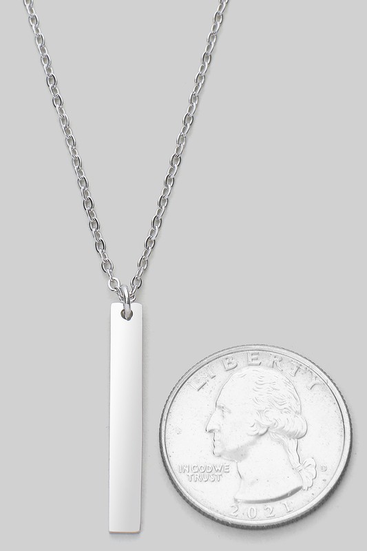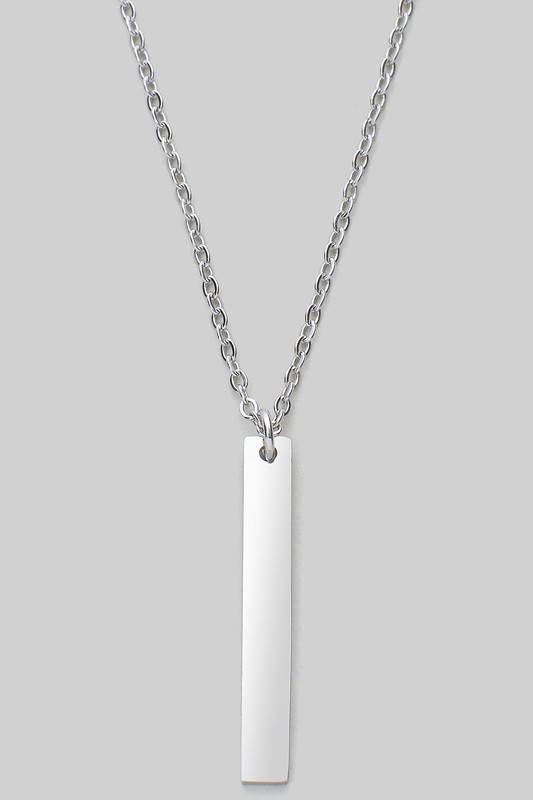 Surgical Steel Bar Pendant Necklace - #GN8205-1 Please register or log in to view prices. SURGICAL STEEL BAR PENDANT NECKLACE. LENGTH 16+2".Units in Prepack: 2Price per unit: $4.00