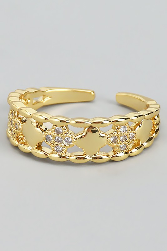 Brass Textured Stack Ring With Cz Clover Please register or log in to view prices. BRASS TEXTURED STACK RING WITH CZ CLOVER. SIZE 7.Units in Prepack: 2Price per unit: $3.50