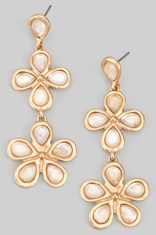 Dangling Tiered Flower Drop Earrings Please register or log in to view prices. Add instant romance to any outfit with these dangling tiered flower drop earrings. Each delicate flo…