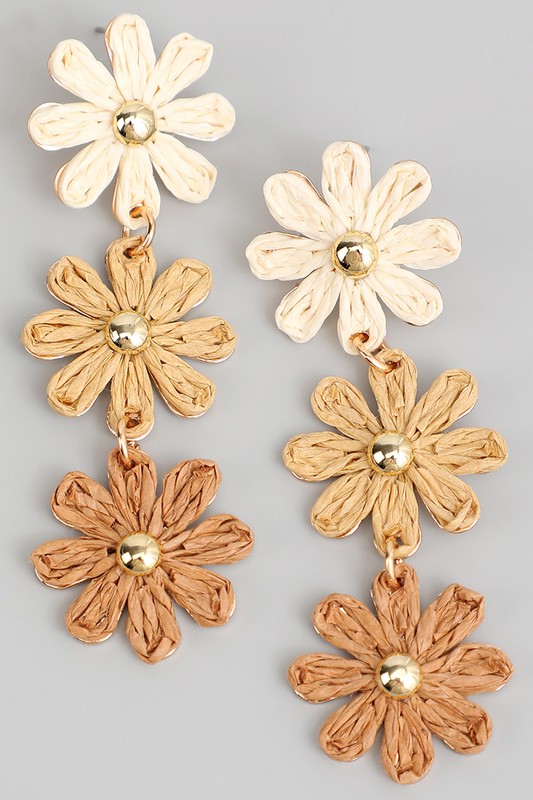 Dangling Tiered Flower Drop Earrings Please register or log in to view prices. Add instant romance to any outfit with these dangling tiered flower drop earrings. Each delicate flo…