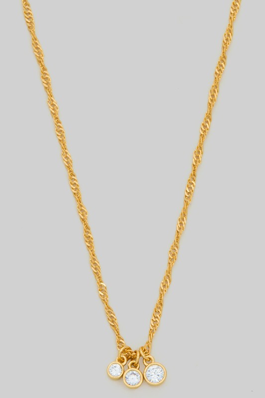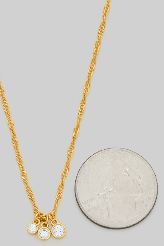 Triple Cz Charm Twisted Chain Necklace