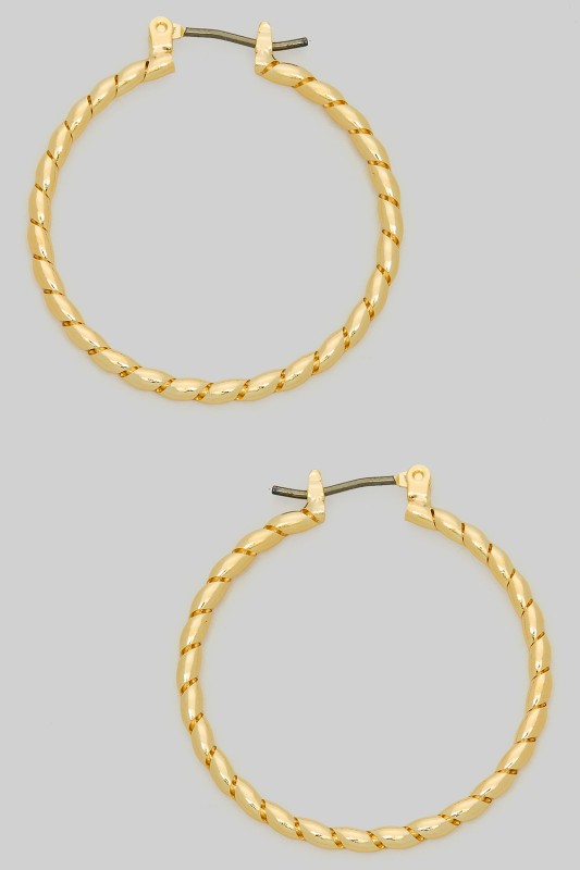 Gold Twist Hoop Earrings Please register or log in to view prices. Gold dipped mini twist hoop earrings. Approx. length 0.65".Units in Prepack: 2Price per unit: $6.00