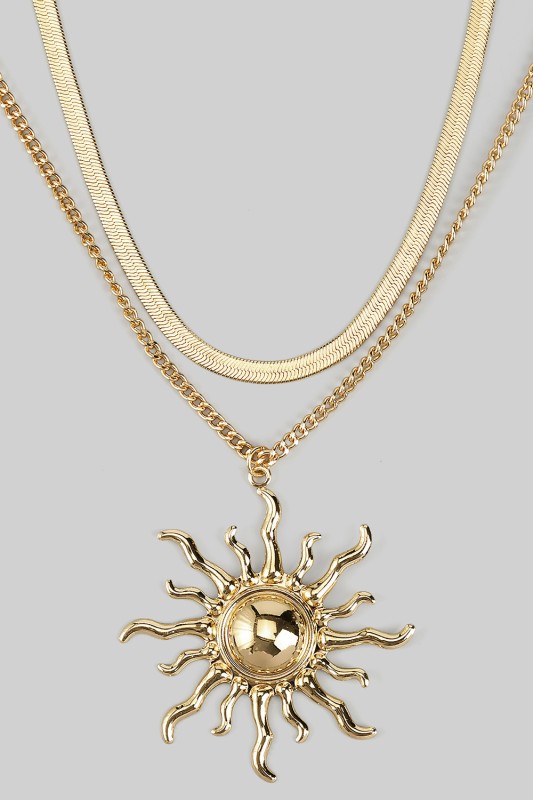 Sun Wave Pendant Layered Necklace Please register or log in to view prices. Sun wave coin pendant layered necklace. Approx. length "15.25+ 2.75".Units in Prepack: 2Price per un…