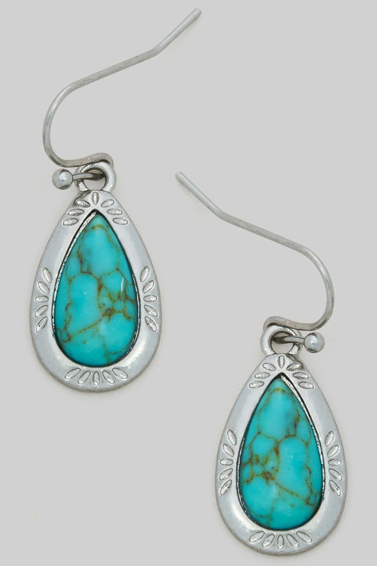 Western Teardrop Dangle Earrings Please register or log in to view prices. Western teardrop stone dangle earrings. Approx. length 1.85".Units in Prepack: 3Price per unit: $3.0…