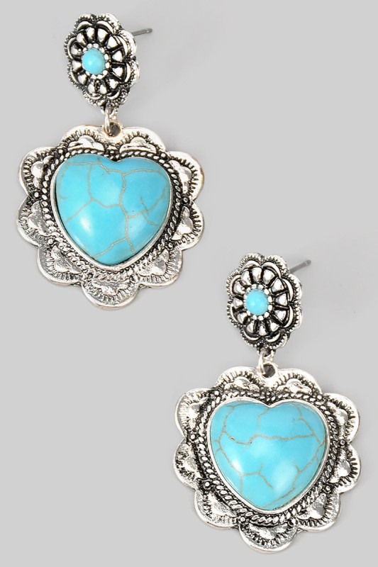 Turquoise Heart Stone Drop Earrings Please register or log in to view prices. Western turquoise heart stone round fishhook drop earrings. Approx. length 1.6".Units in Prepack: 2P…