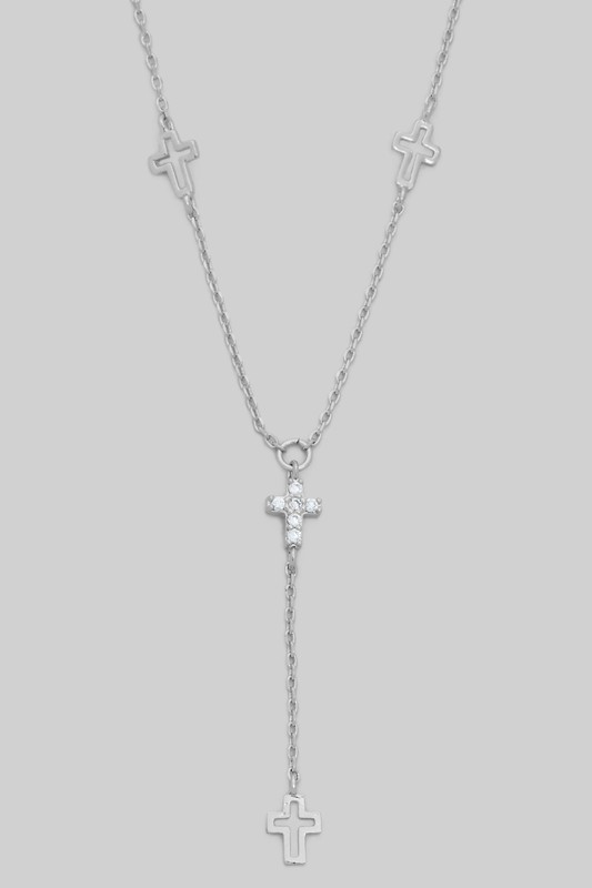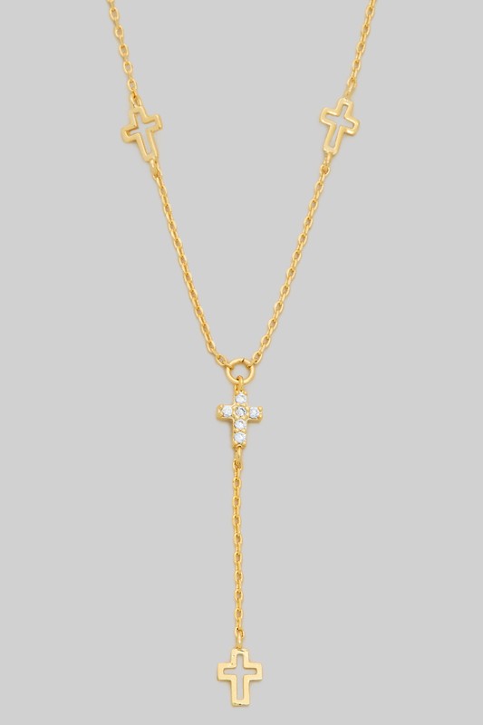Y Drop Cutout And Cz Cross Charm Necklace